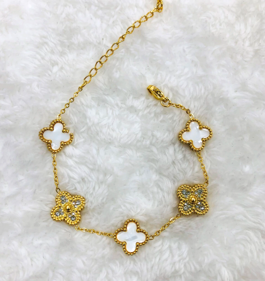Pulsera Trebol Blanco Strass